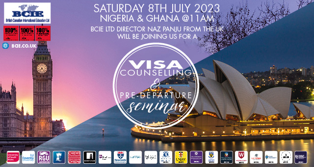 Join us at our FREE Visa and pre-Departure Seminar in Nigeria and Ghana and hear from BCIE LTD Director Naz Panju from the UK